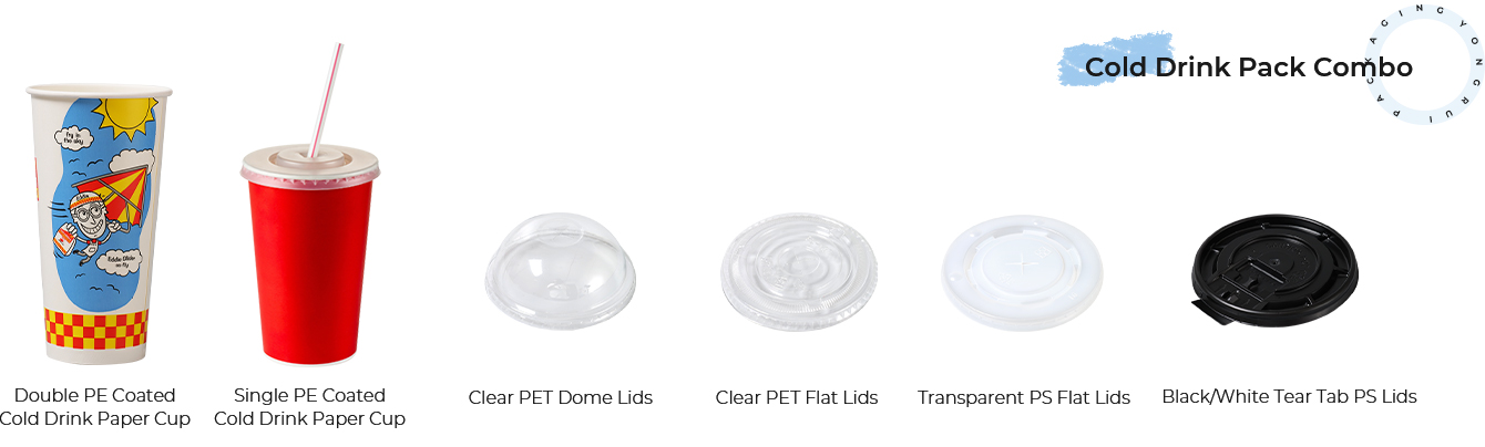 تقدم شركة Yongrui Packaging مجموعة متنوعة من الأكواب الورقية وأكواب المشروبات الباردة PET، المتوافقة مع الأغطية المختلفة وحاملات الأكواب والقش، لتلبية أنواع المشروبات المتنوعة (المشروبات الساخنة والمشروبات الباردة والعصائر وما إلى ذلك). من خلال حل شامل لمختلف احتياجات العملاء والسوق، تلتزم Yongrui بتزويد أصحاب المقاهي ورجال الأعمال بدعم تشغيلي موثوق.